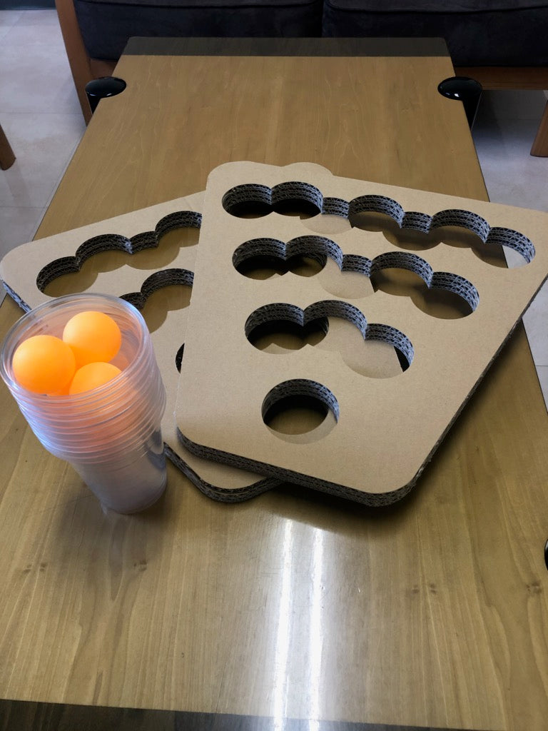 ビアポン(Beer Pong)は、テーブルの両端に置かれた水やビールが入ったカップに、ピンポン玉をテーブルの両端から投げ入れる競技です。今回弊社では段ボール製のビアポンキットを販売致します。持ち運びも簡単で手軽に遊べます。おうち時間を楽しみましょう!